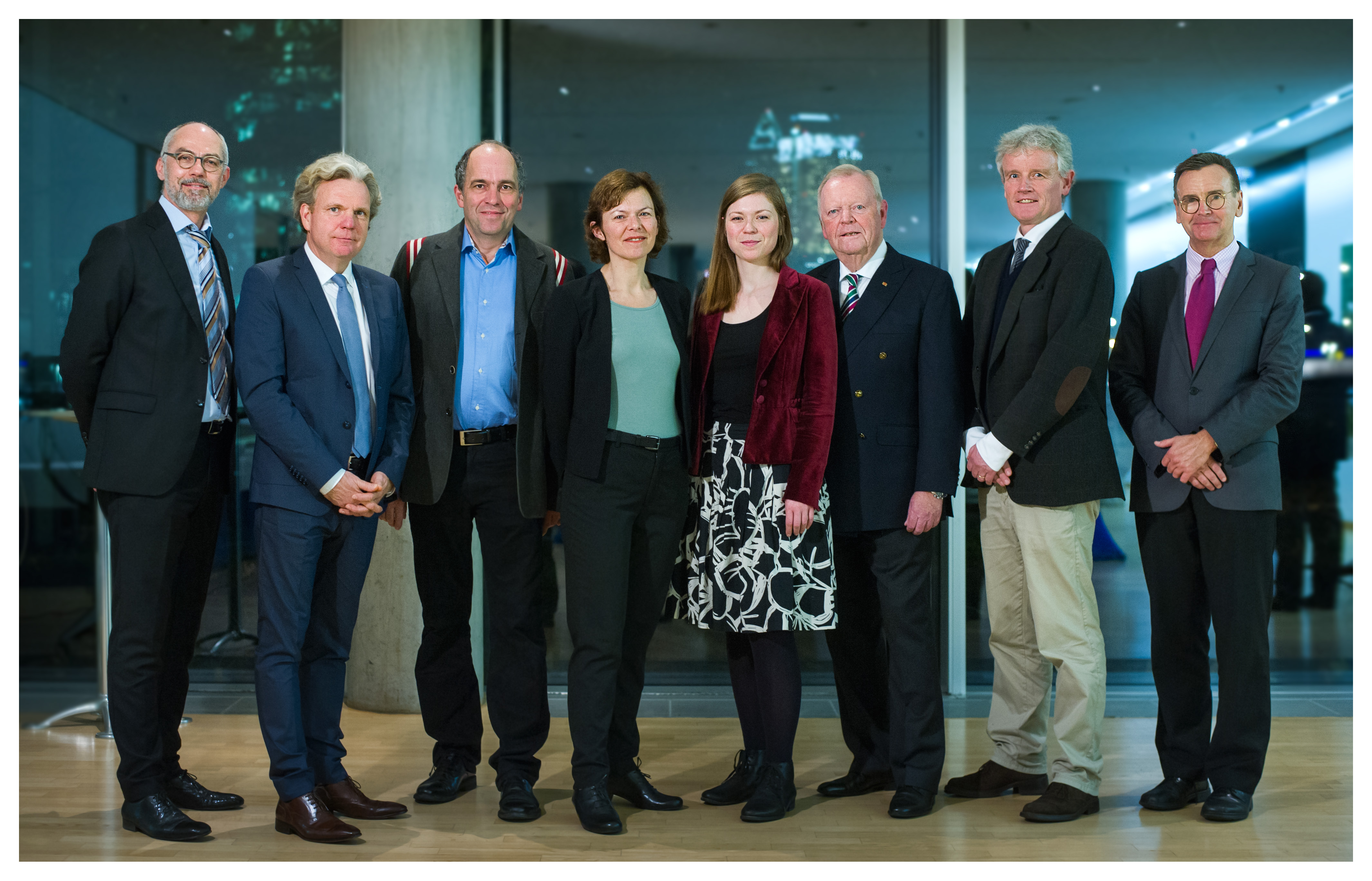 Preisverleihung 2015: Thomas Tuma (Chefredaktion Handelsblatt und Kuratorium der Vogel-Stiftung), Michael Grytz und Christof Boy (Westdeutscher Rundfunk Fernsehen), Eva Roth (Berliner Zeitung), Christina Schmitt (Vogel-Nachwuchspreisträgerin 2014, zurzeit Bayerischer Rundfunk), Dr. Michael Laumanns (Verleger, Der Patriot, scheidender Vorstandsvorsitzender der Vogel-Stiftung), Moritz Müller-Wirth (Chefredaktion ZEIT, in Vertretung für den erkrankten Preisträger Henning Sußebach), Dr. Klaus-Rainer Jakisch (hier für WDR 5 Hörfunk) (v.li.)